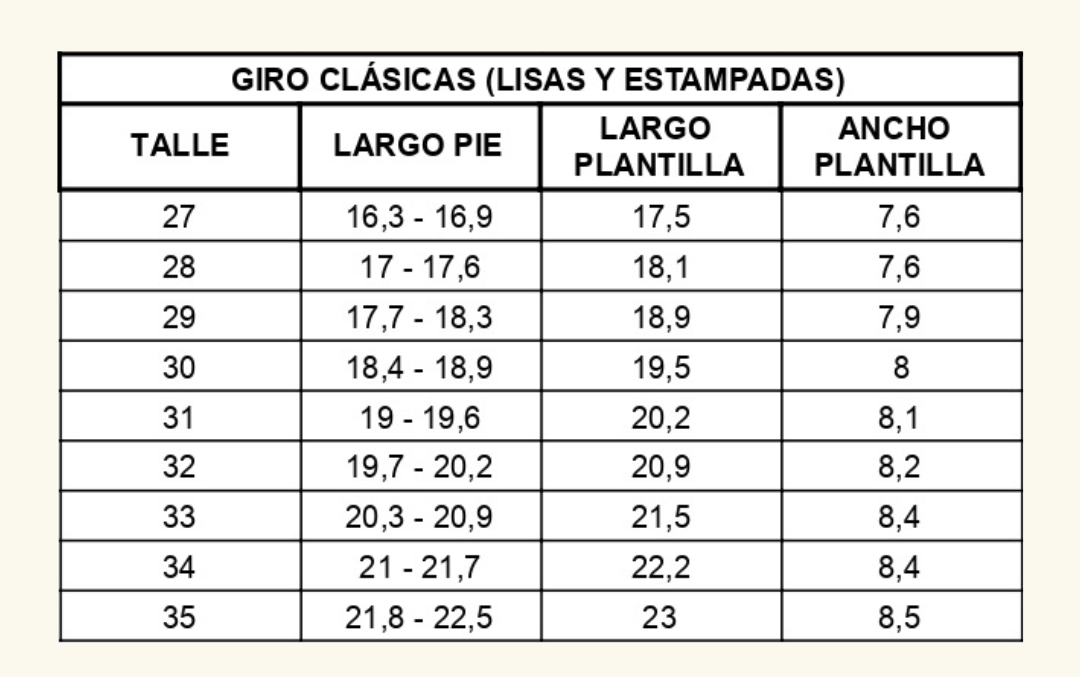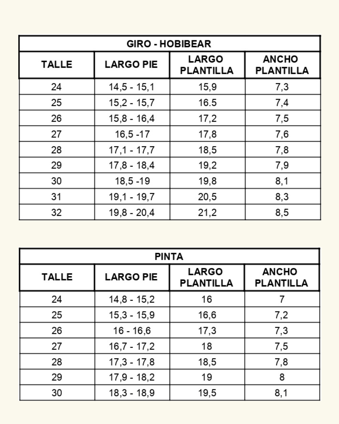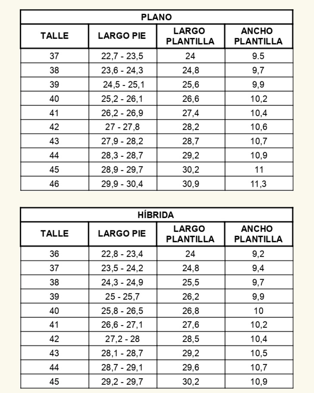 Recordá el nombre del modelo que te interesa para buscar el talle en las siguientes tablas.
